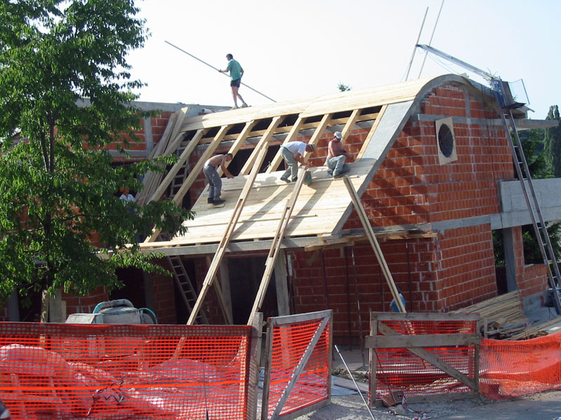 Krovište je djelomično AB krovna ploča a djelomično je pokriveno sa daščanom oplatom.