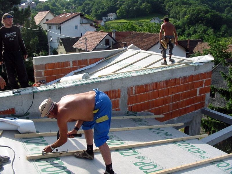 Na postojeću oplatu i ploču postavljen je TERMOTOP deblinne 10 cm, učvršćen sa specijalnim vijcima dužuine 23cm, i kontra štaflama.
