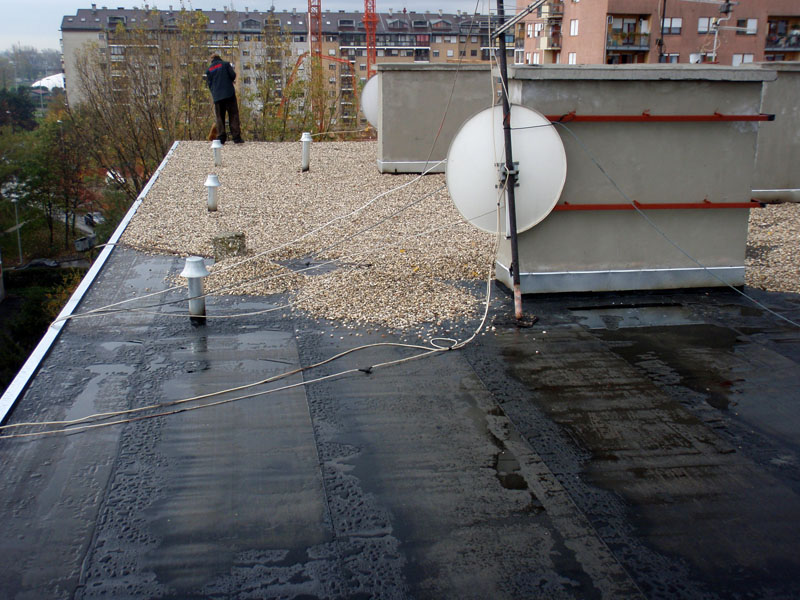 Skinuli smo postojeći uvaljan kulir i postojeće slojeve bitumizirane ljepenke te postavili dva sloja varene ljepenke V-4 i završni sloj sa GVZ-4 mm.